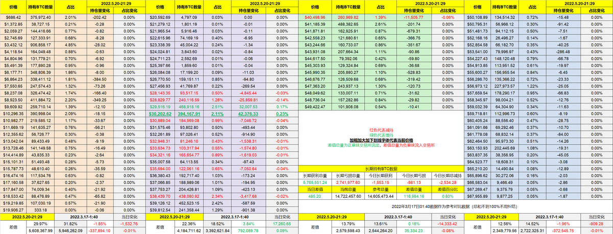 从昨天美股开盘后到今天美股开盘前,几乎都是处于很低的流通量,这也证明了这部分的筹码在前期下跌的时候大多都已经投降了,剩下的要么就是打算死拿一段时间,要么就是等价格的进一步变化。而40,000美金上方的亏损筹码,今天只有在40,000这个阶段出现了较大的减持,其它的几乎还是处于低流通状态。