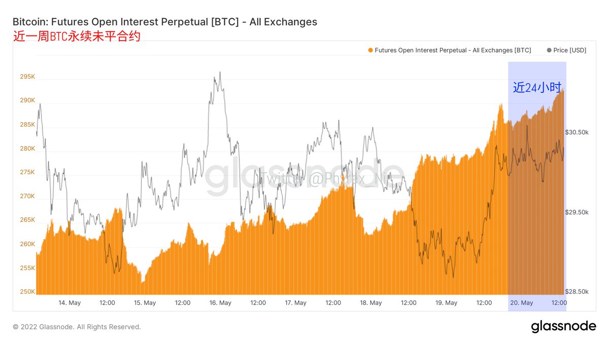 #BTC 的用于合约上来看,目前的资金费率已经是大范围的看多了,而且已经有了下跌的趋势,对于短线操作的小伙伴来说,目前未必是最高点,但依然能保证较为安全的离场。毕竟通过资金费率来判断涨跌的准确度相对还是很高的,从未平合约来看,目前已经是周内的最高点,并且还有越来越高的趋势。