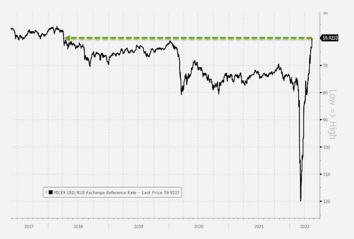 1/n QUI sanctionne QUI ? Le rouble a atteint son plus haut niveau, le RECORD des ces 7 dernières années. L'euro et le dollar chutent.