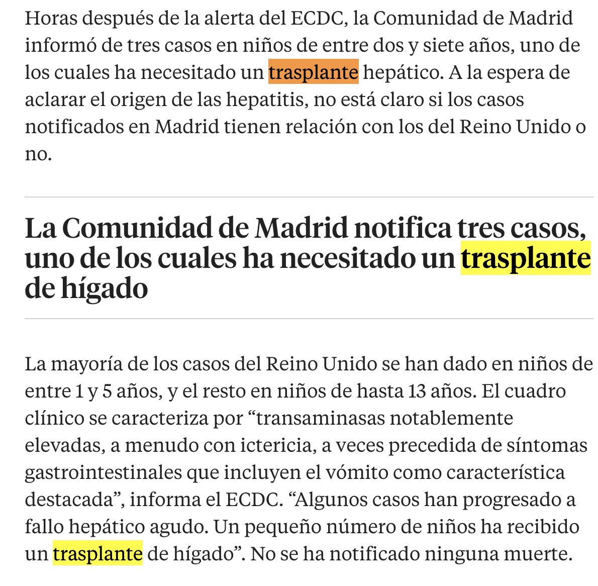 El asunto es grave y hay que preocuparse, en Reino Unido varios niños han requerido hospitalizado y transplante, sin ir más lejos la comunidad de Madrid ha informado de que un niño ya ha tenido que recibir uno.