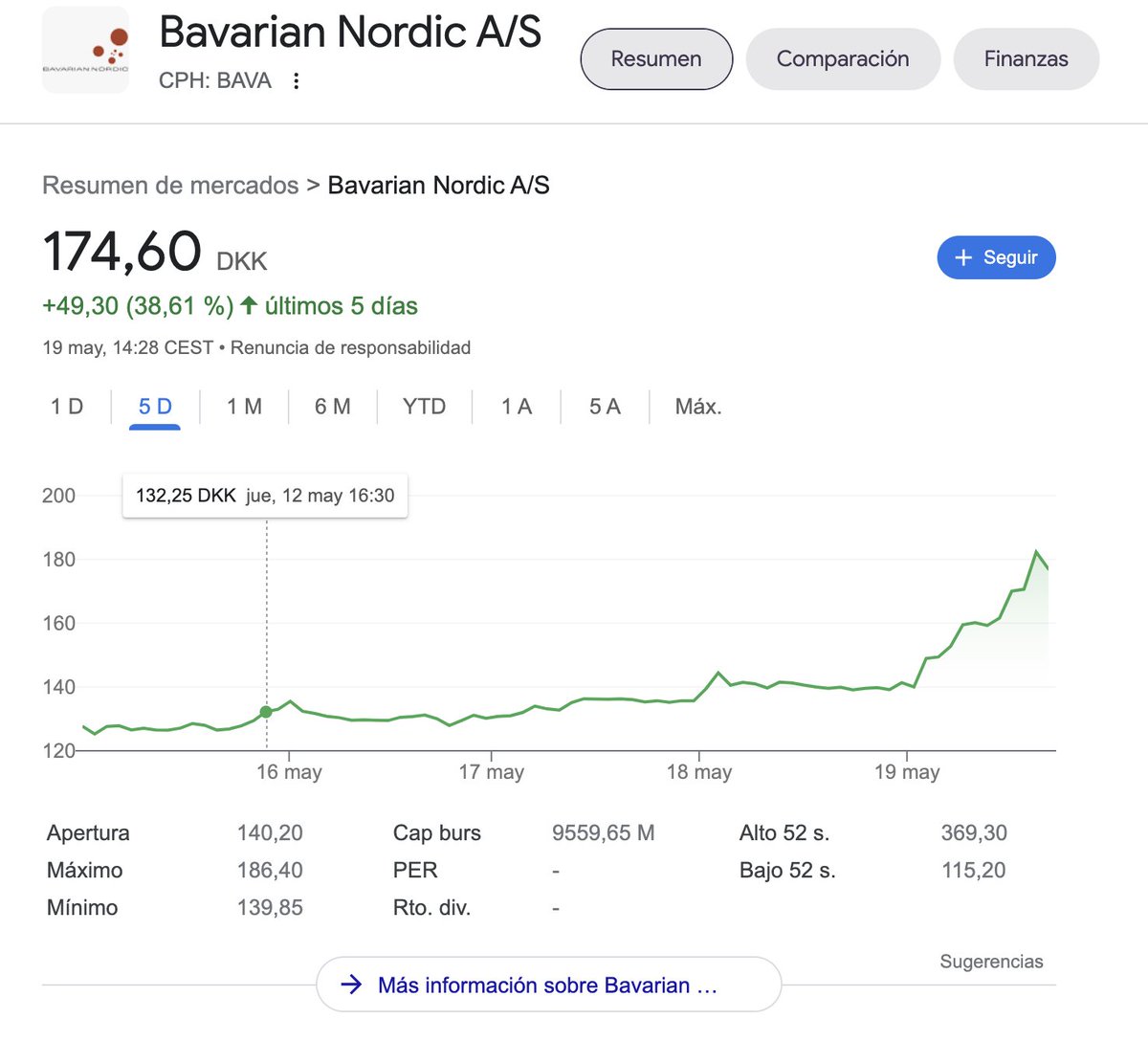 A más pánico en los medios, más suben las acciones y ya ni te digo cuando la empresa sea publicitada explícitamente anunciando que empiezan a distribuir masivamente su vacuna. Así funciona el mundo almas de cántaro...