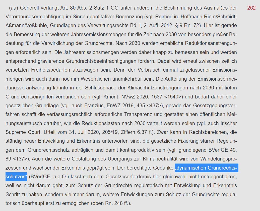 /10 Dabei stellt das BVerfG klar, dass auch die BuReg eingebunden werden kann, wenn die Sache komplex ist und ständiger Änderungen unterworfen ist. Dadurch gewährleistet der Gesetzgeber einen dynamischen Grundrechtsschutz (Rn. 127, 140). Zum Begriff Klimaschutzbeschluss Rn. 262: