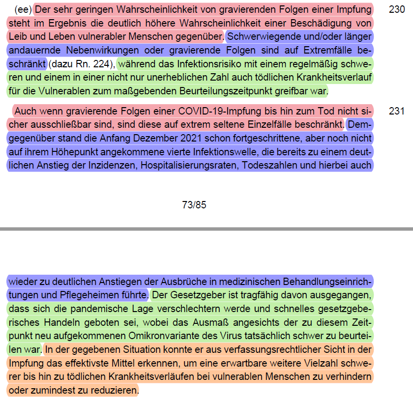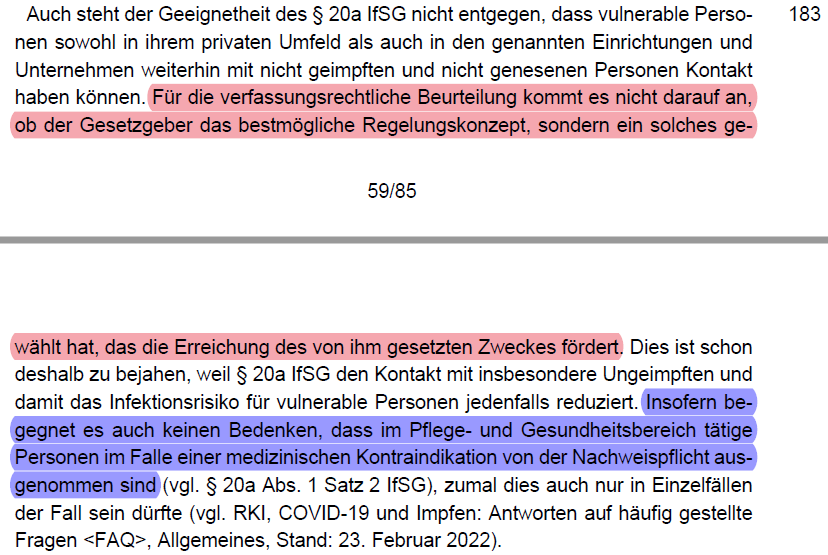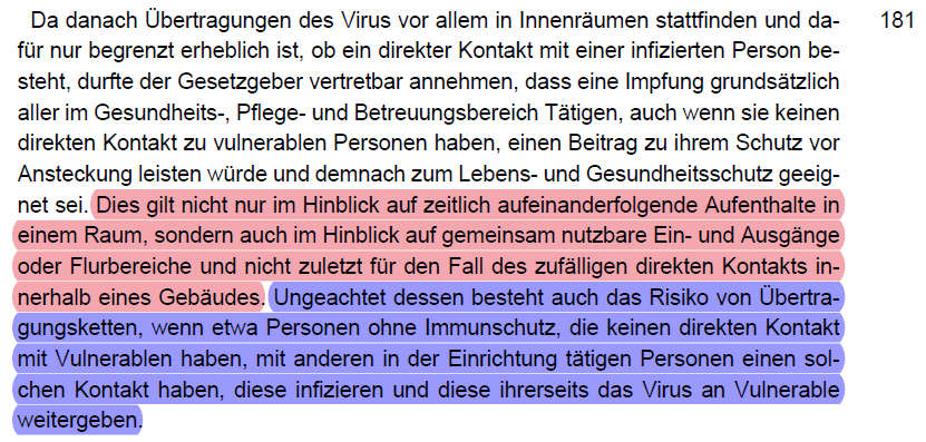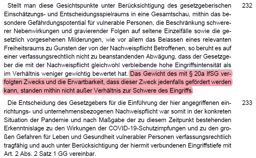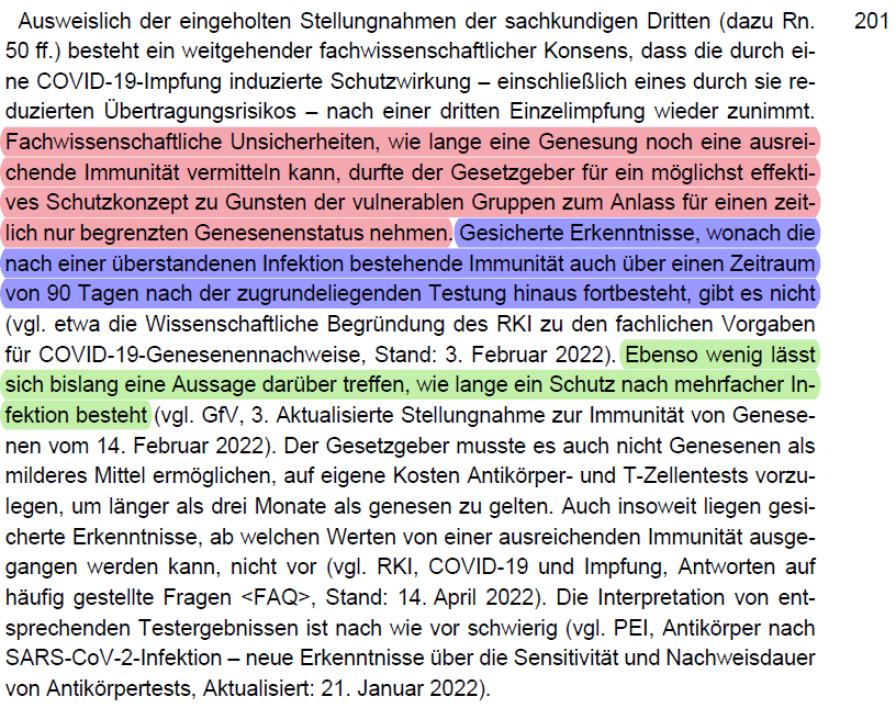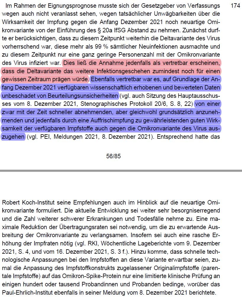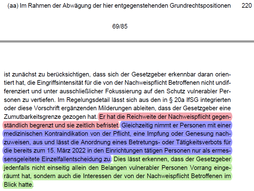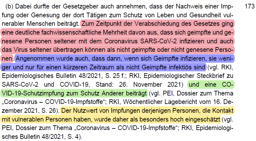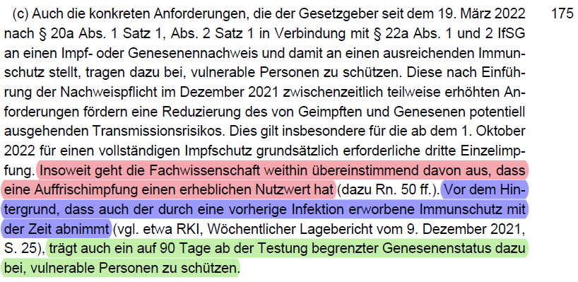 /35 werden müsste (vgl. dazu folgenden Thread). Keine gleich geeigneten Alternativen zu einer Impfpflicht waren Testen (Rn. 192 - 196) oder AHA+L (Rn. 197).
