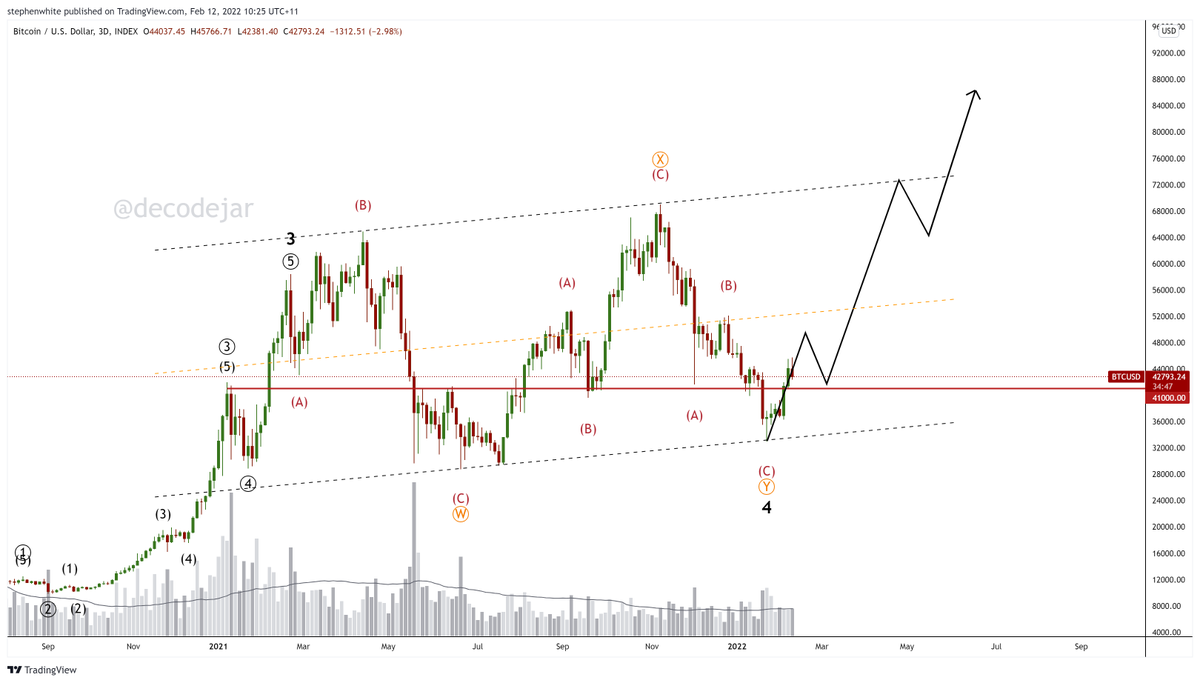 The E wave could hold 40k support or find the lower trendline. That would suck in the H&S bears nicely!