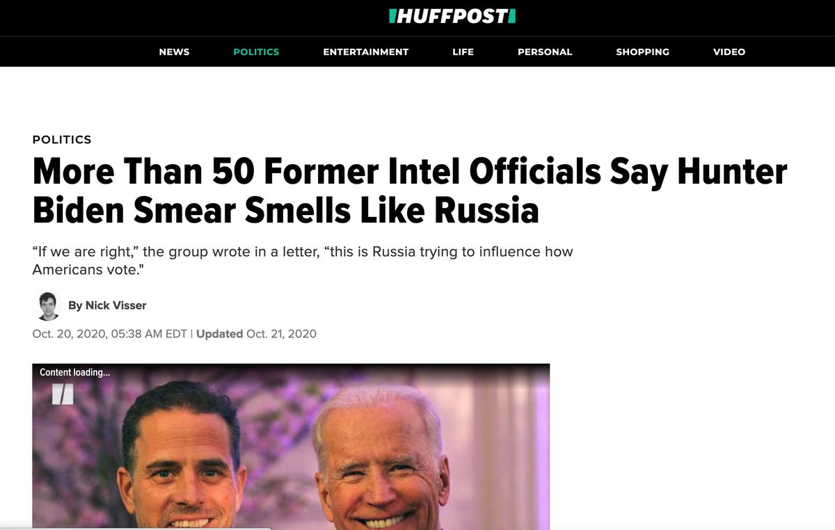 Maybe it's naiveté, but I just can't believe that the media outlets that spread all these lies -- especially the CIA lie about Hunter Biden's laptop being "Russian disinformation," which even NYT/WP/NBC now say is false -- just refuse to acknowledge this let alone retract it.