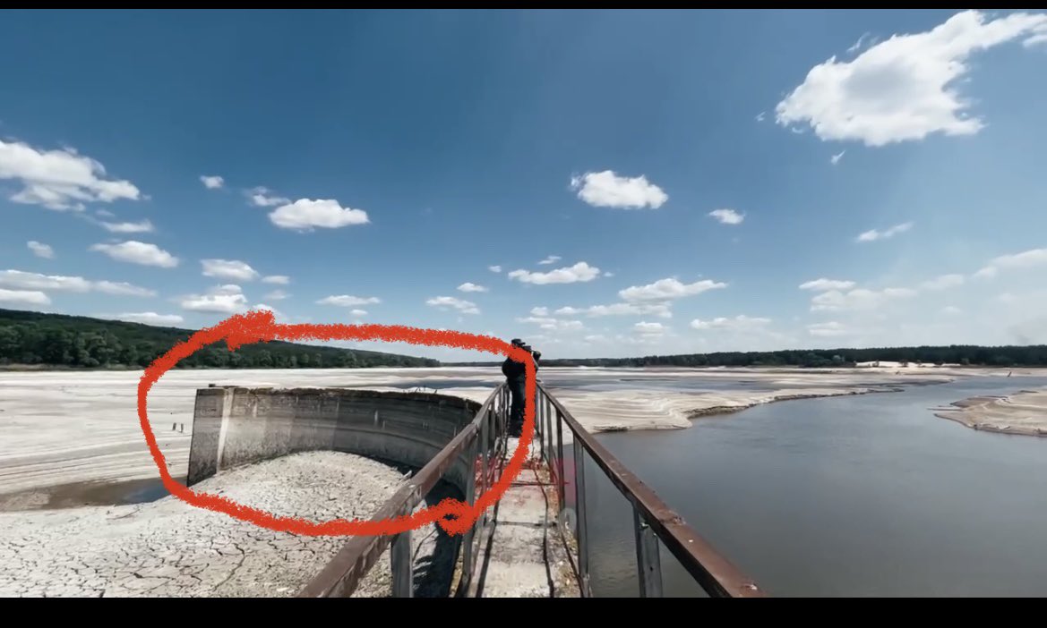 The previous video has been geolocated to the Oskil Hydroelectric Dam (49.1751477, 37.4728725). In the video the concrete bank on the right of the video, buildings and the retaining wall into the lake all match the satellite photo 100%. This video was first posted May 21, 2022.