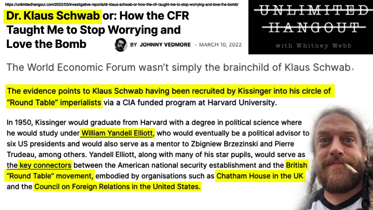 Now UK investigator @JohnnyVedmore has given us strong evidence that the real power behind Klaus Schwab and his WEF is the British Round Table network and its US front group, the Council on Foreign Relations.