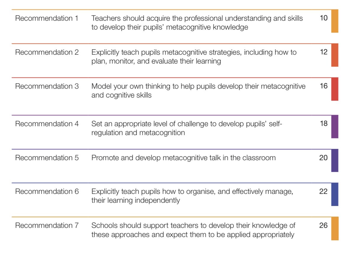 This report offers, 7 evidence based recommendations to support teachers to develop metacognitive knowledge and skills in their students.