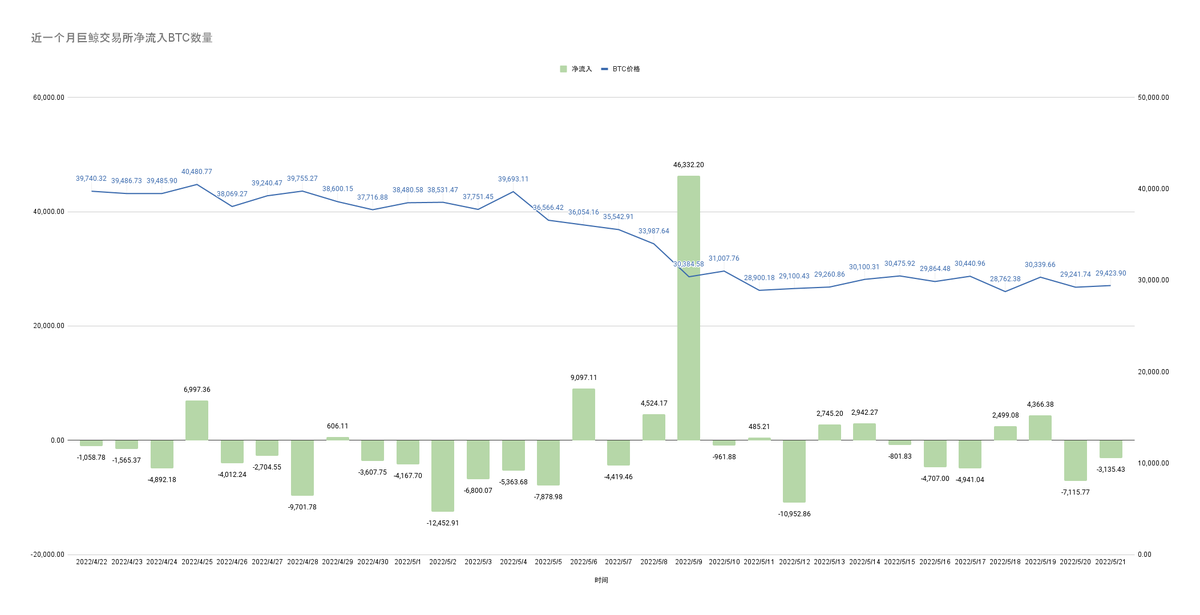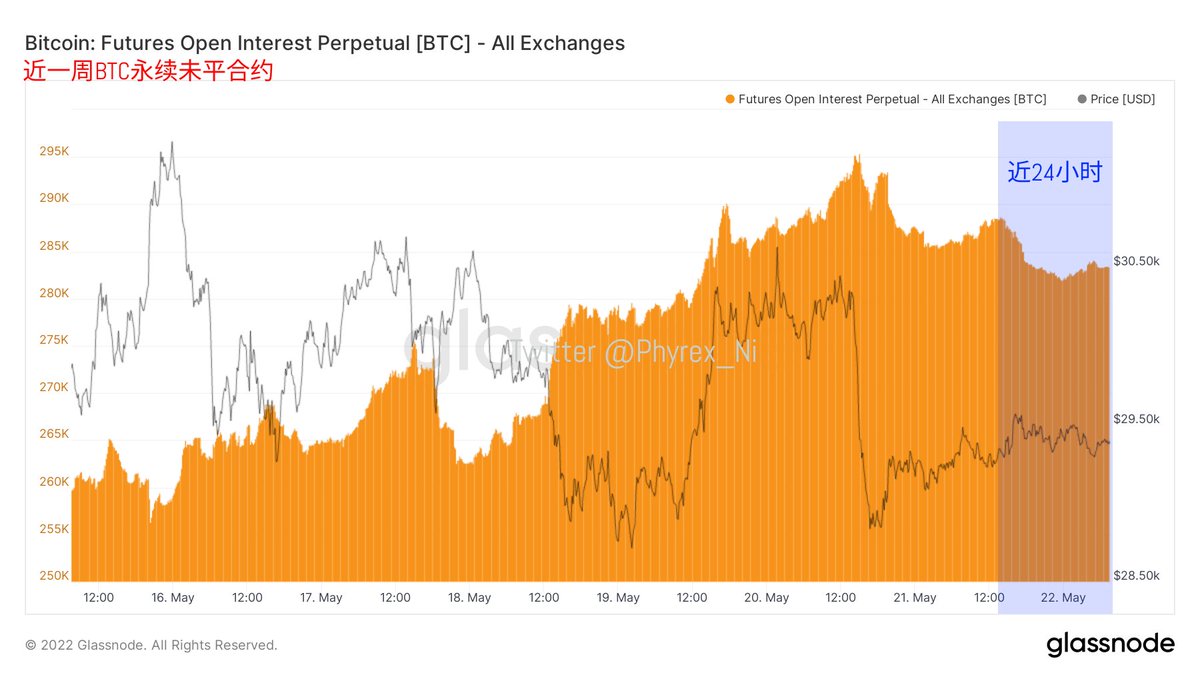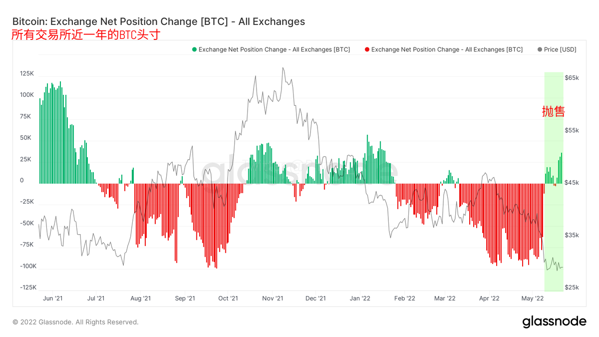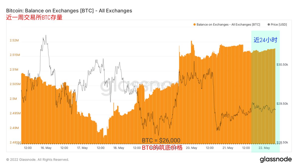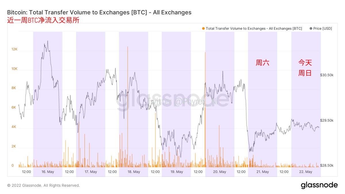 在逐渐的缩小,流通量的降低可见一斑。通过转移到交易所的 #BTC 数量也可以发现,目前的转移量已经恢复到了LUNA事件前,BTC还处于40,000美金时期的周末转移量,而低流通量自然会带来更低的抛压,这样对于资金的压力也会减少。