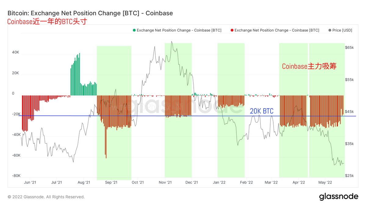 从整体交易所的 #BTC 存量头寸来看,目前依然是出售为主,而切换到Coinbase则可以发现,Coinbase 的巨鲸虽然吸筹量有减少了30%左右,但是依然是在保持着持续的购买,并没有停止。