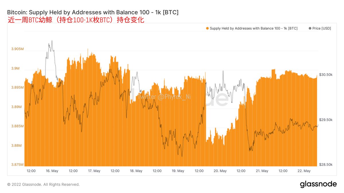 幼鲸(持仓100-1K枚BTC)近24小时没有太大的变化