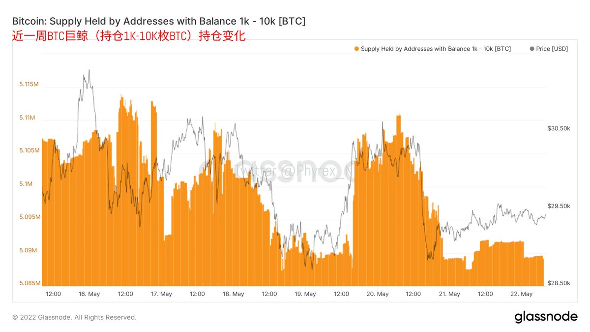 巨鲸(持仓1K-10K枚BTC)近24小时有略微减持的迹象