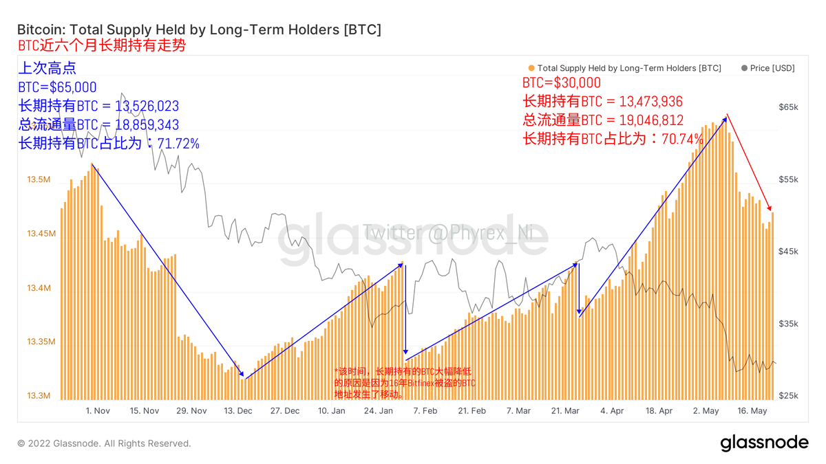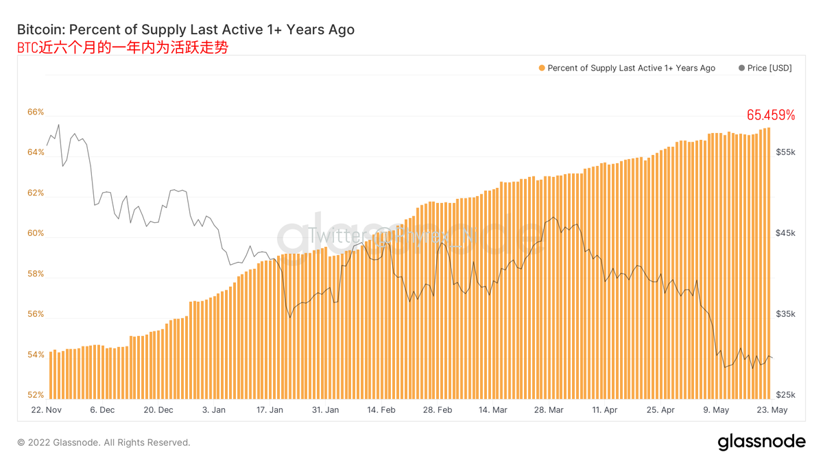 在长期持有 #BTC 的数据中可以看到,随着周末BTC链上波动的减少,长期持有的BTC数量在上升,但依然是出于从高位下降的趋势,但是如果将长期持有的时间从155天拉升到一年的数据,可以发现,持仓超过一年的BTC则是出于持续上升的趋势,而且目前已经达到了65.4%以上。