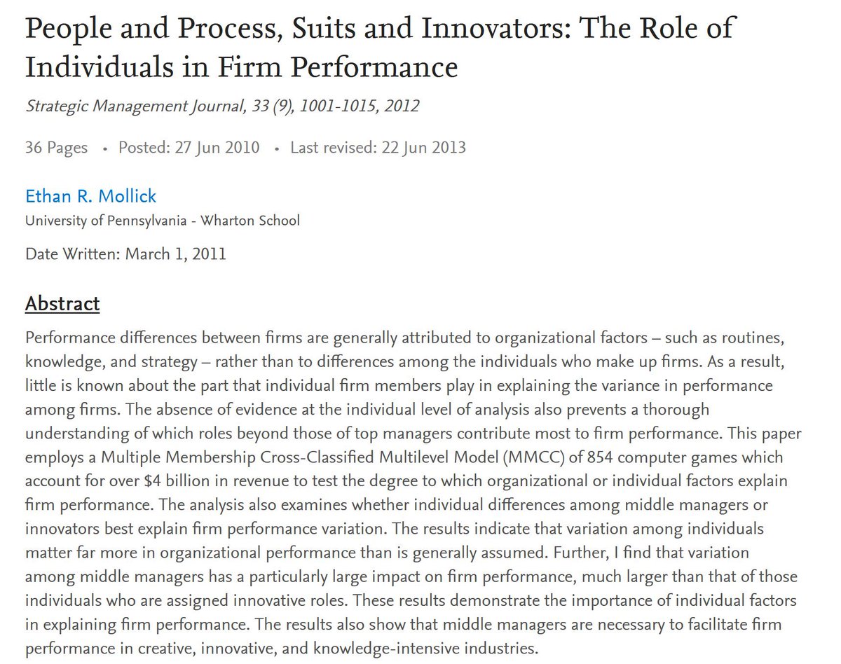 I have a paper that shows the difference in quality among managers in the game industry accounted for 22%(!!) of variation in game revenue; the best managers could boost any team they lead. papers.ssrn.com/sol3/papers.cf…