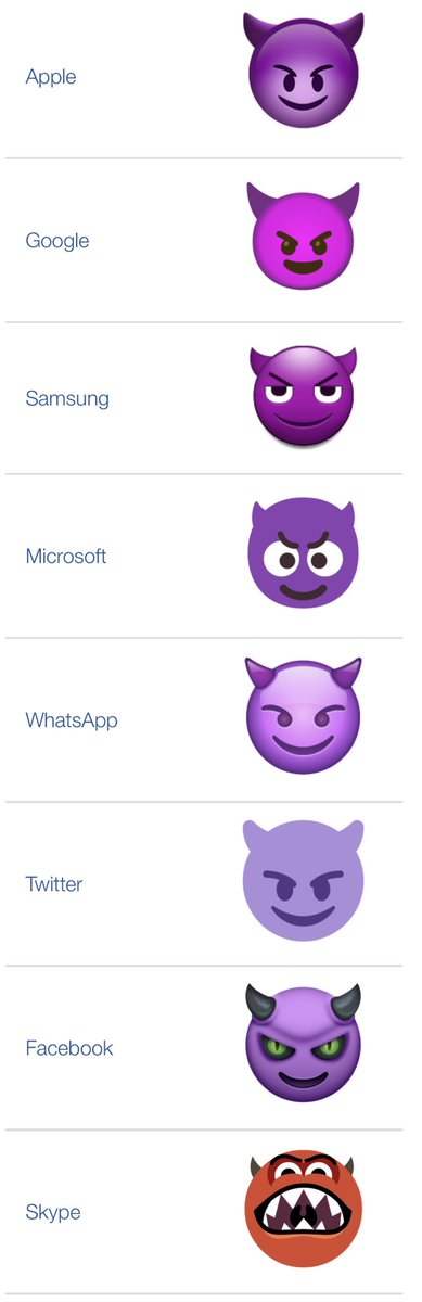 The subtle differences in emojis across platforms can cause miscommunication! Though many emoji have become more standardized, there is still a lot of variation. (Also, this is an area where Facebook brings it, especially for evil emoji.) Older study: grouplens.org/blog/investiga…