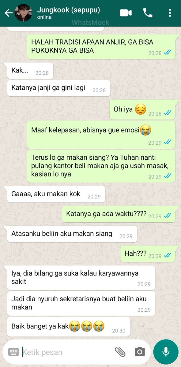 note: di awal kan ada part yang th nyebut kalau jk sepupu paling kecil ya, aku ralat karena di sini jk punya adik laki laki🙏🏻🤗
