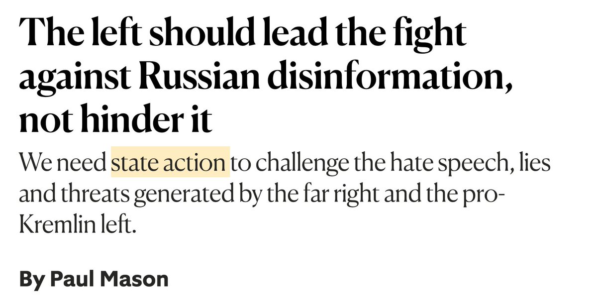 @paulmasonnews Difference between us is that while I think @paulmasonnews is spreading disinformation -- just as he has on Syria, and other targets of NATO proxy wars -- I would never call on the state to police him.
