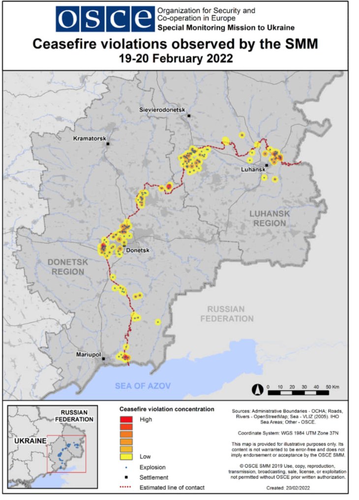 Right before Russia's invasion, OSCE monitors reported a sharp increase in shelling against the Russian-aligned Donbas republics.