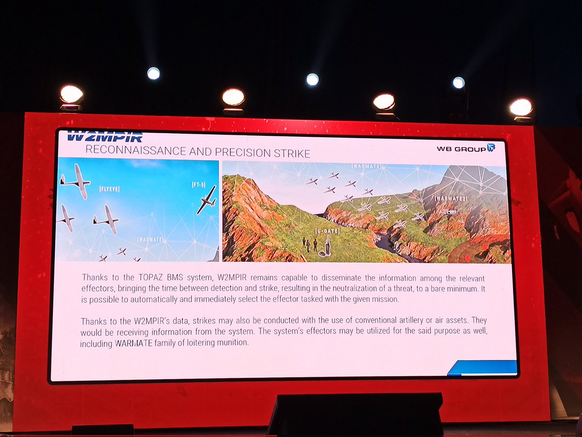 Ł. Miazgowski: Wielowarstwowy wielozadaniowy rój W2MPIR to system stworzony przez Grupę WB. Zaprojektowano go do zwalczania szerokiego spektrum celów w tym do penetracji tzw. "baniek antydostępowych" przeciwnika. @WBGroup_PL
