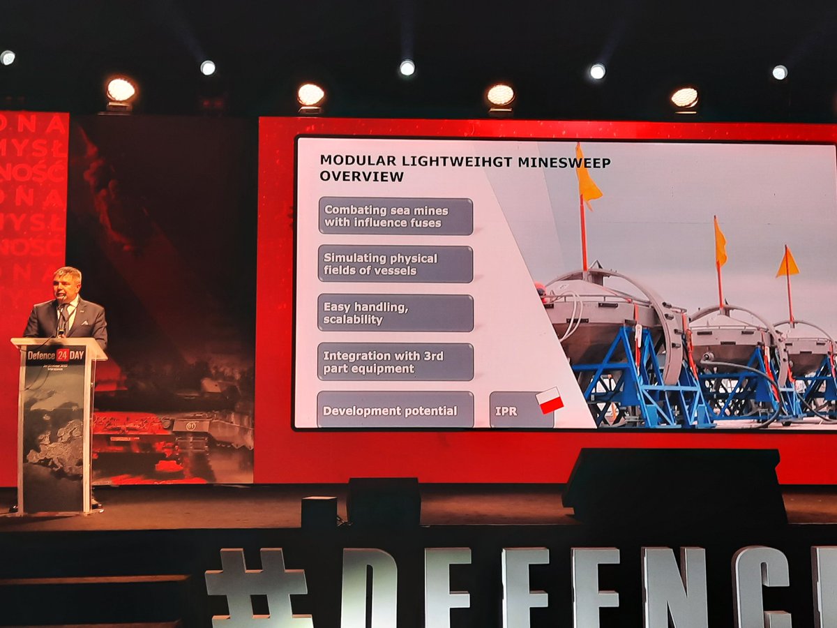 Okrętowy system uzbrojenia OSU-35K prezentowany przez Łukasz Zbrzeżny z PIT-Radwar to zdalnie sterowany system uzbrojenia wyposażony w aut. armatę kal. 35 mm z niezależnym systemem śledzenia celu #Defence24Day#Promotory#D24Day