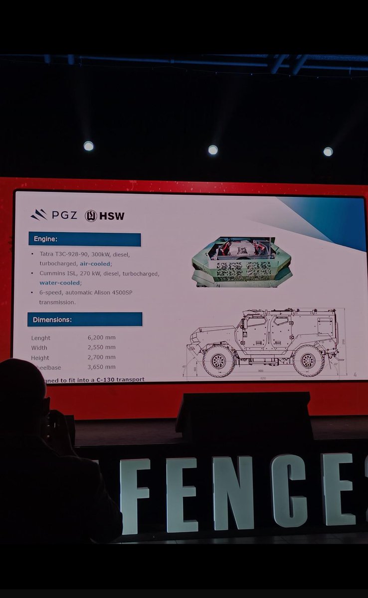 Opancerzony pojazd 4x4 oferowany przez HSW zbudowany jest w oparciu o sprawdzone i zapewniające wysoką mobilność w różnych warunkach terenowych podzespoły czeskiej @TatraTrucks #Defence24Day#D24Day@PGZ_pl