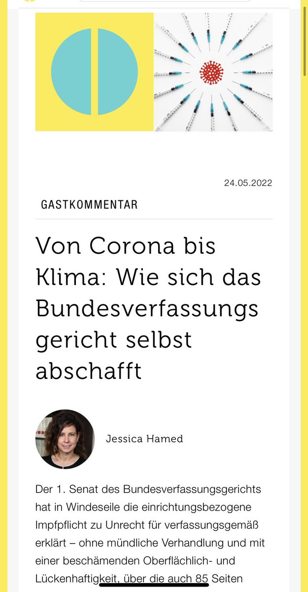 Dass die Impfungen nur bedingt zugelassen sind, wird nicht erwähnt, dafür wird iE betont, dass es eine Überschätzung (!) von schwerwiegenden #Nebenwirkungen gebe, da „bei weitem nicht bei jeder Verdachtsmeldung ein Kausalzusammenhang mit der Impfung gesichert ist“ (Rn. 227) 3/6