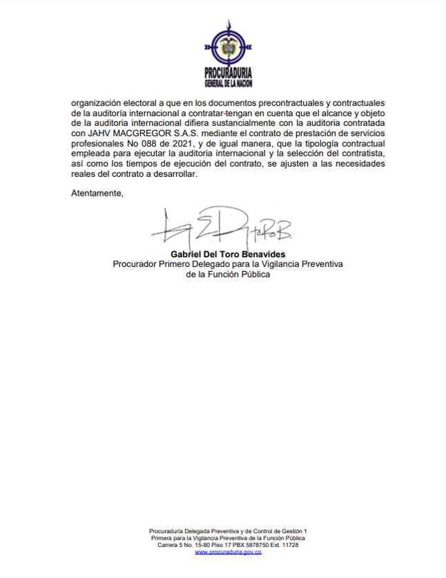 #ATENCIÓN 🚨 | Procuraduría presenta nuevas observaciones a @Registraduria sobre auditoría internacional a contratar⬇️