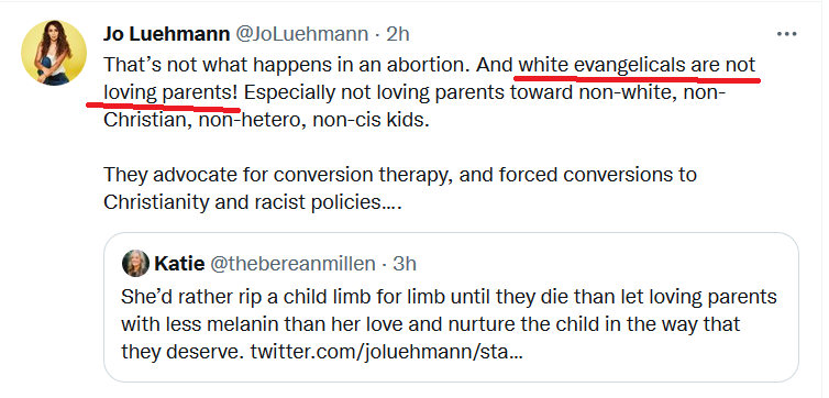 What she said about white evangelicals is nothing short of rank bigotry, but because they have submerged themselves into theory that is built on a postmodern foundation full of moral relativism and nihilism they cannot see how evil their conclusions are....