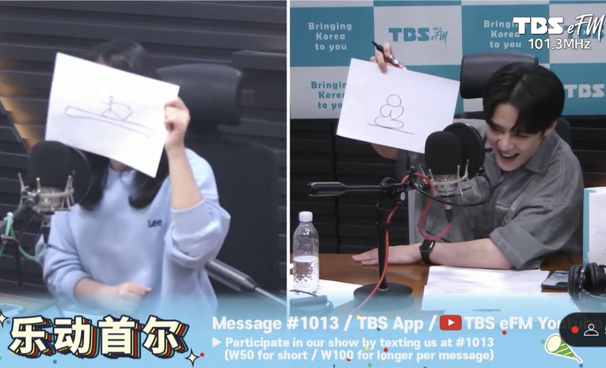 They decided to both draw something so we can guess what the exercise/activity is. Kun was laughing so hard at his drawing he said he was gonna go crazy 😂