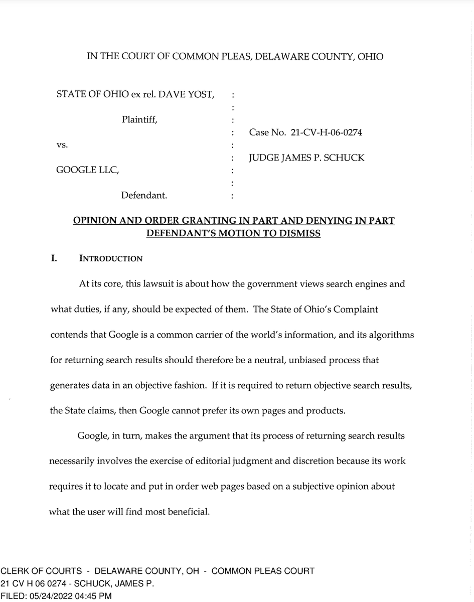 BREAKING NEWS: Yesterday an Ohio court ruled that Google could be treated as a common carrier. Ruling in favor of the Ohio AG's claim: ohioattorneygeneral.gov/Media/News-Rel…