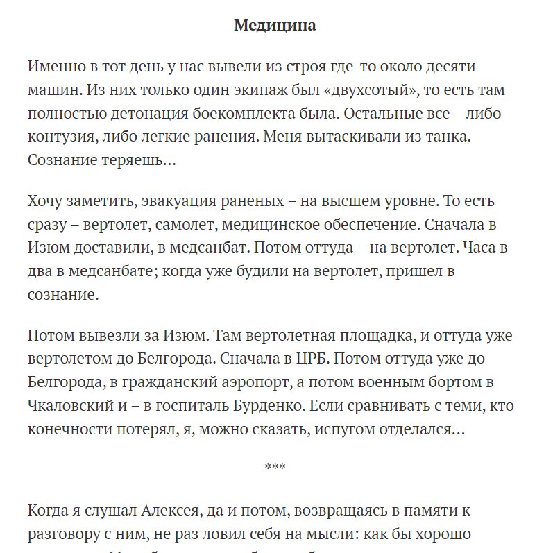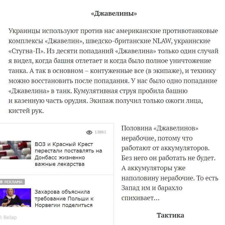 He claims that he observed 10 Javelin ATGM strikes on Russian tanks and only one led to a K-kill. He said he and other tankers were given concussions from Javelin strikes though. When he was injured he said he was ground CASEVACED and then flown from Izyum to Belgorod by helo. 7/