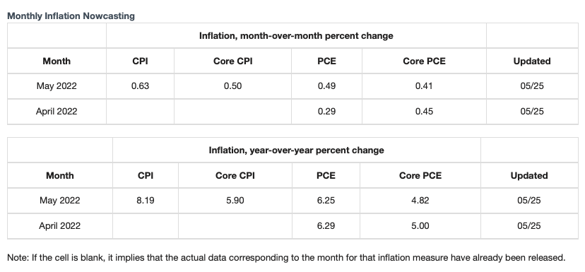 5/5. Cleveland Fed says that they update their CPE & PCE Inflation Now Cast daily. Definitely will be a resource I will be checking in on from time to time.