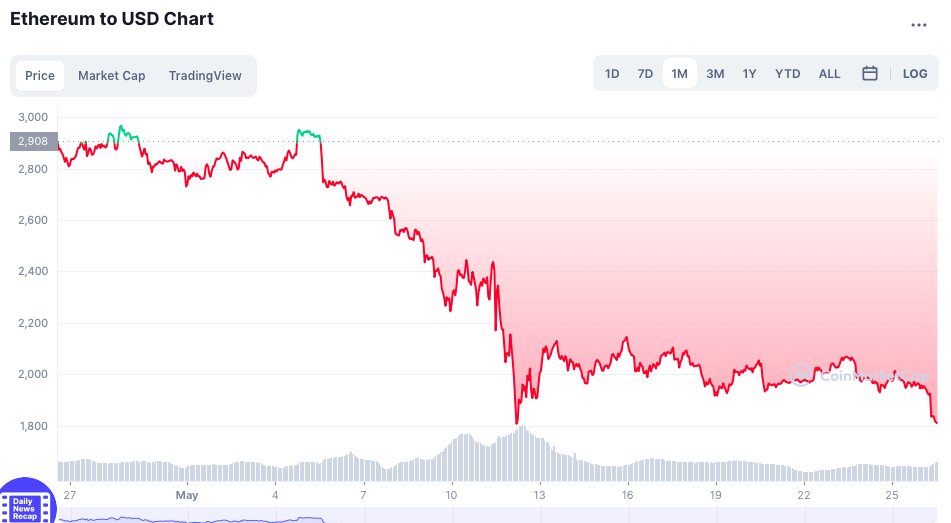 1/4. And while the Bloomberg article is not really Crypto focused, I just happened to be checking out all the crypto charts. They seemed to find a support around May 11, but one by one are breaking to new lows today.