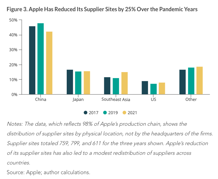 3/14. "....At the same time, Apple added 14 new Chinese suppliers to its roster in 2021, many of which were higher value, knowledge-intensive manufacturers of intermediate goods like optical components, sensors, and connectors."