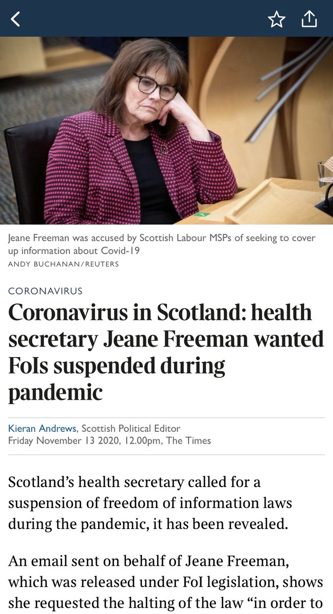 During Covid when Scotland needed accurate info the most, the Scottish Health Minister tried to suspend FOI legislation. This would have allowed ministers & NHS to operate in secrecy during the pandemic. For all their many faults, no similar move was even attempted by UK govt.15/