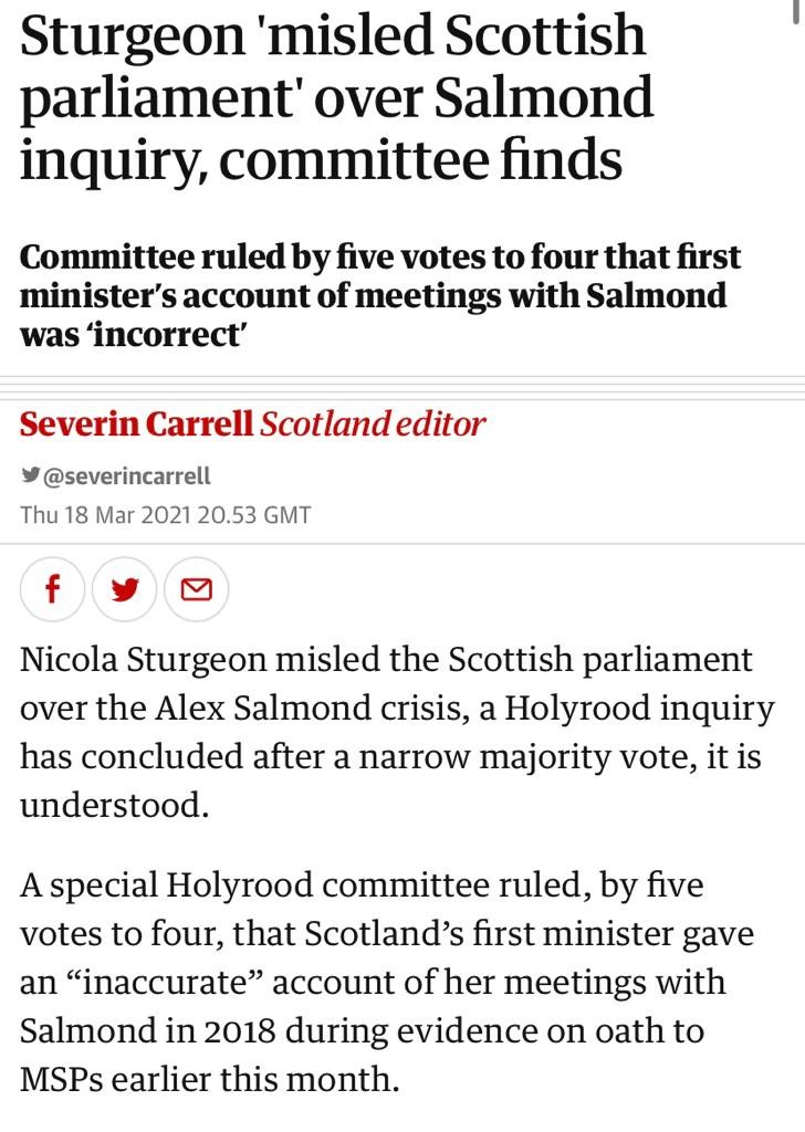 And remember that investigation into Alex Salmond – the man the SNP wanted to be the first Prime Minister of an independent Scotland - a committee of MSPs found that Nicola Sturgeon had misled parliament about what she knew. 19/