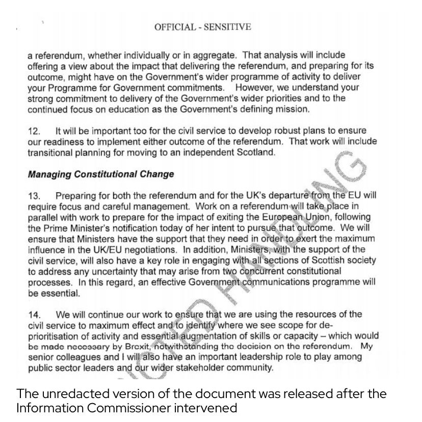 And what about being open about indyref2? Shortly after becoming FM, Nicola Sturgeon tried to block the release of an explosive indyref2 memo from the nation’s top civil servant. The memo said that planning for a new ref may cause “deprioritisation” of other policy areas 20