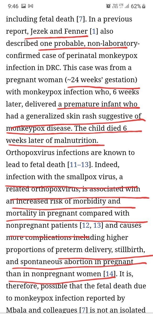 162/n pregnant women are at huge risk to #monkeypox, it leads to miscarriages,deaths of children in womb & if by chance pregnancy continues it may lead to child been born with lesions.ctd)