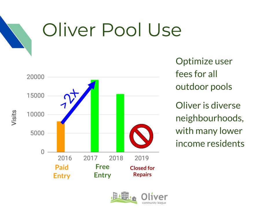 The @CityofEdmonton Administration threaten to close Oliver Pool almost every budget cycle, without understanding that outdoor pool admission should be lower than recreation facilities. Oliver Pool users doubled when entry was free. Optimize entry fees to increase users.