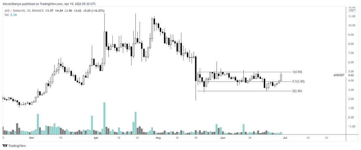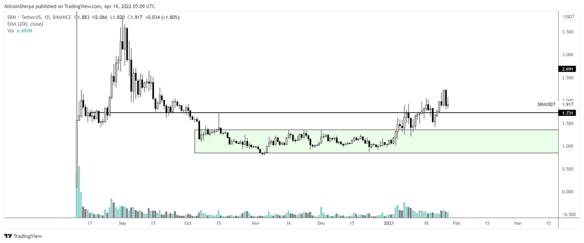 Accumulation rarely looks like accumulation while it is going on. Ppl are usually waiting for much lower when it's better for most people to just DCA into the range and wait for the big move. Here are some past examples of $AXS $DOT $SRM before they had huge moves