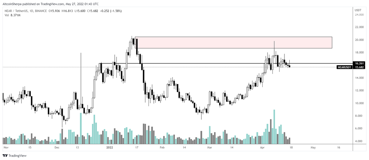 Why I took this trade: I initially started to average into $NEAR around January. Had a good initial entry around $11ish and took some profits at $16. The idea of the trade was based around another L1 doing ok. 3AC just put some $ into the ecosystem and the L1 narrative worked