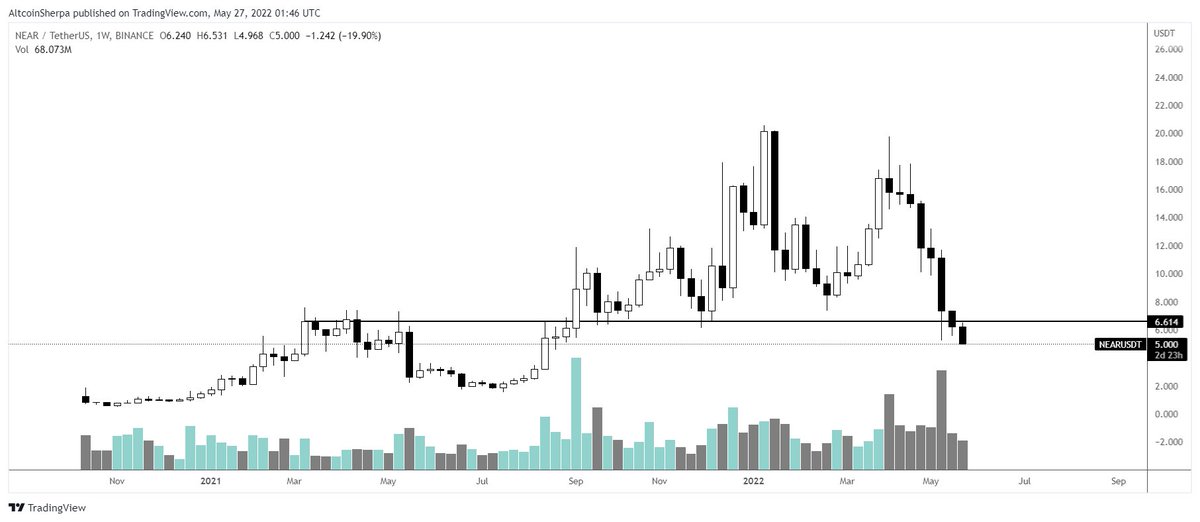 -I had plenty of chances to get out of NEAR. I actually was of the opinion everything was going to go much lower when btc started to lose its MS cleanly weeks ago but I kept thinking we would see a relief pump. We still might yet but it's also better to stay careful rn.