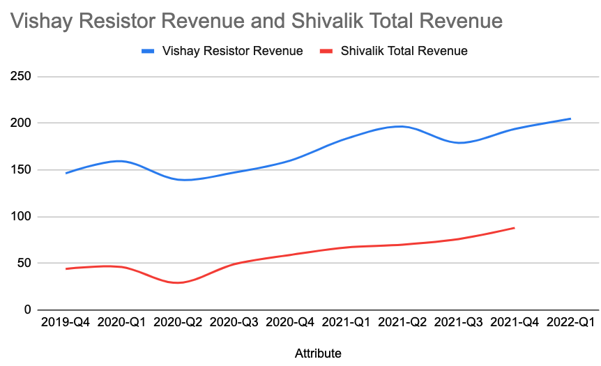 ^ We can see strong correlation between Vishay's resistor & shivalik's revenues.