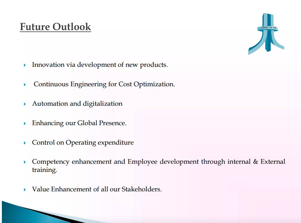 A: Shivalik is in the electronic components industry & converts metals into electronic components. This is the value add of Shivalik.