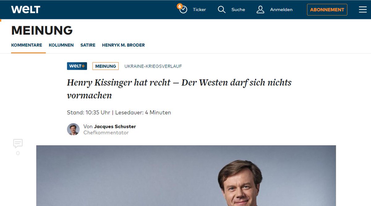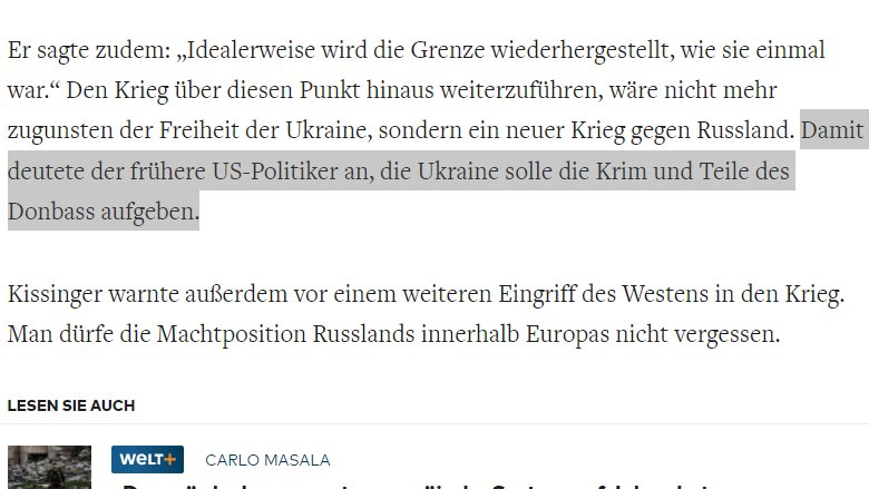 Ausgerechnet im Springer-Blatt "Welt" erschien dann ein Beitrag, der die Aussage von Kissinger lobte und ihm teilweise recht gab.