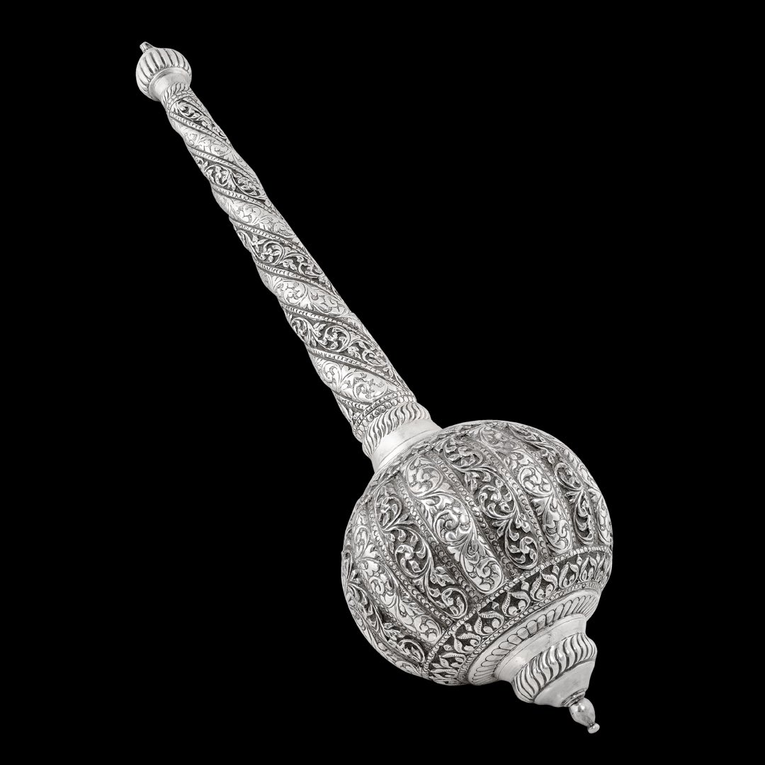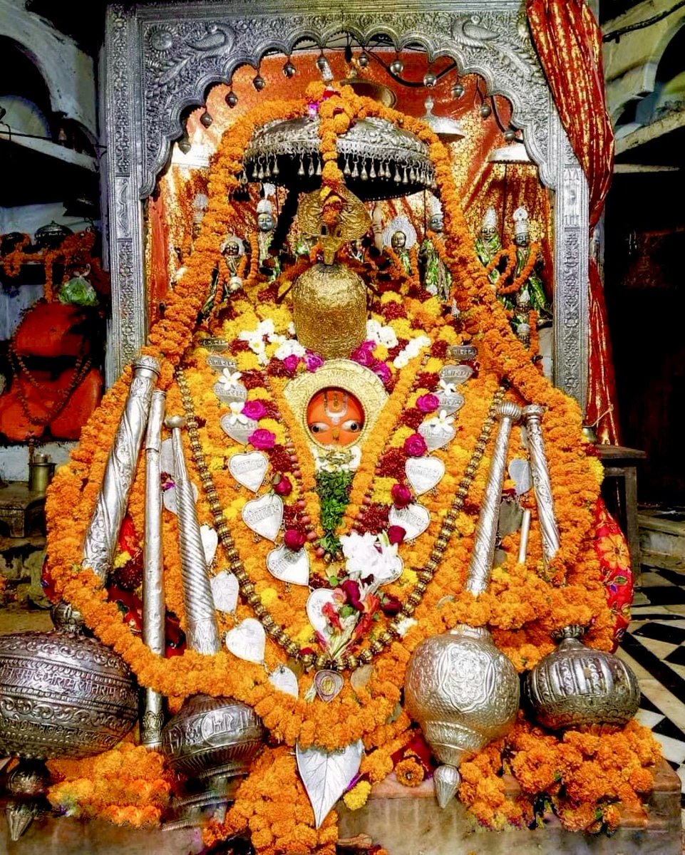 HANUMAN GADA- given by Kuber, it is a symbol of self-sovereignty and the power to rule. Once Hanuman’s gada saved Surath, the king of Kashi, from the arrows of Ram.