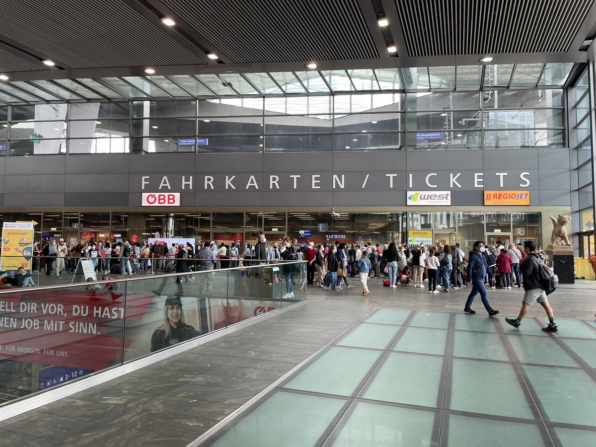 I helped two groups of deaf people, a half dozen each, adults & kids, get tickets to Munich. They were tourists, from the look of it. We chatted by texting on our phones and showing each other the messages. Tomorrow morning 6:30. No idea where they are sleeping.