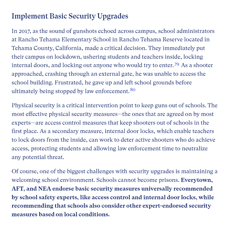 "Physical security is a critical intervention point to keep guns out of schools. The most effective physical security measures—the ones that are agreed on by most experts—are access control measures that keep shooters out of schools in the first place."