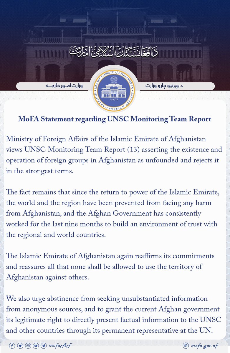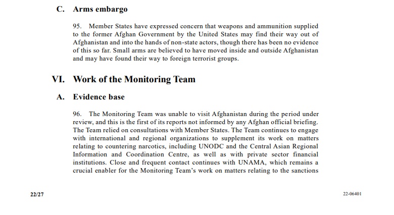 "The Monitoring Team was unable to visit Afghanistan during the period under review, and this is the first of its reports not informed by any Afghan official briefing. The Team relied on consultations with Member States."