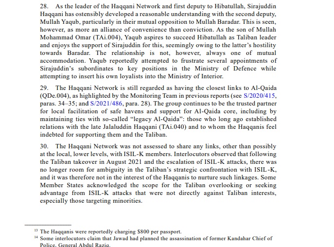"Nevertheless, the Haqqani Network’s securing of key positions increases its capability to work with the foreign terrorist groups that are its traditional allies. Several Member States have expressed concern at the Haqqanis’ control over the issuing of identity papers."